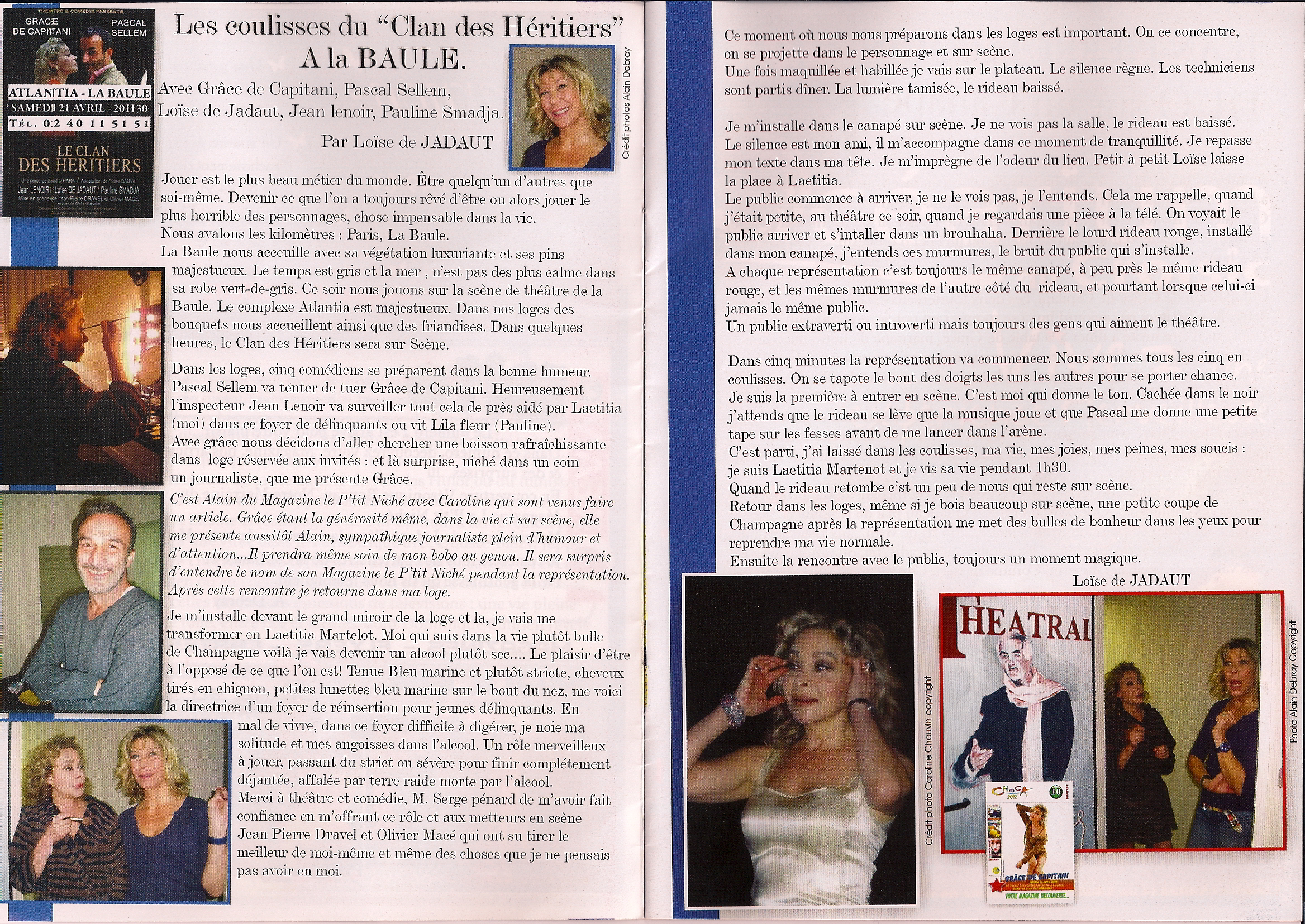 Les coulisses du Clan par Loïse de Jadaut DIAPORAMA de la représentation à Montargis Prestation unique dans la "SYMPHONIE DES FAUX CULS" d'Olivier Lejeune en remplacement de Julie Arnold, avec TEX. |