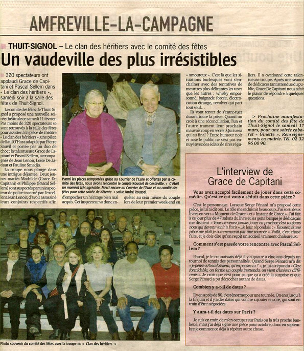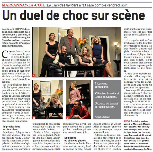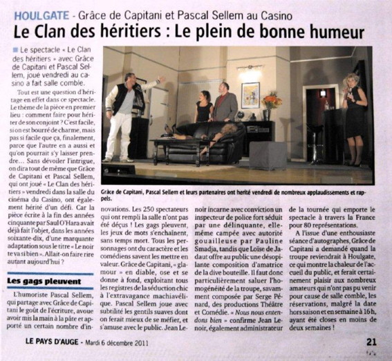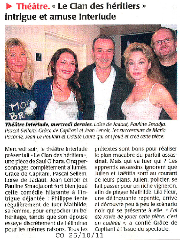 "Théâtres & Comédie" présentent Grâce de Capitani, Pascal Sellem, Loïse de Jadaut, Pauline Smadja et Jean Lenoir dans Le Clan des Héritiers.