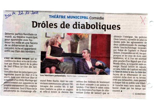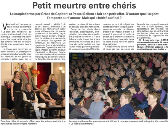"Théâtres & Comédie" présentent Grâce de Capitani, Pascal Sellem, Loïse de Jadaut, Pauline Smadja et Jean Lenoir dans Le Clan des Héritiers.
